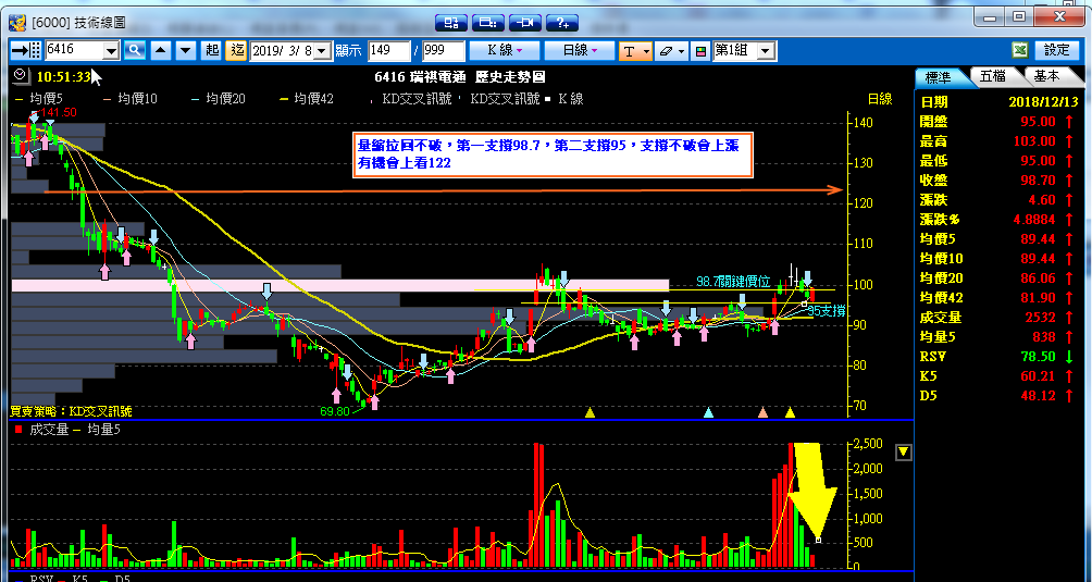 6416瑞祺電通,第一道支撐98.7,第二道95